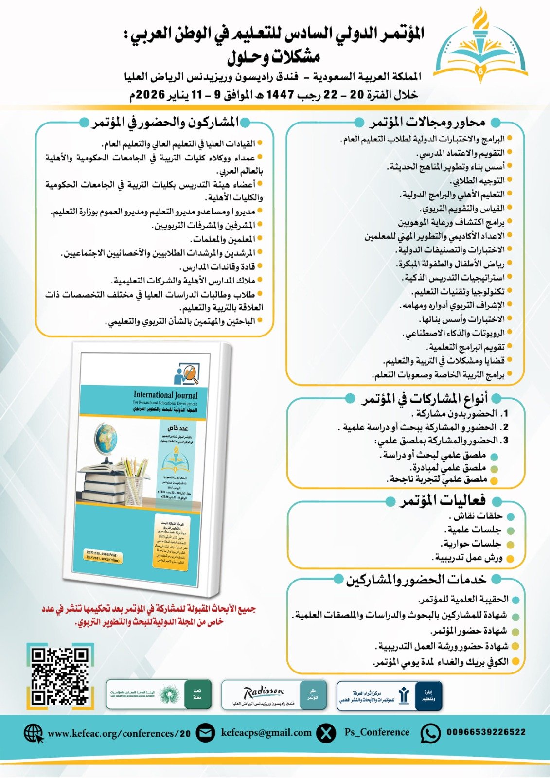 خلال الفترة من 20-22 رجب 1447هــ الموافق 09 الى 2026-01-11 | آخر موعد لإستلام المشاركات: 2025-12-09