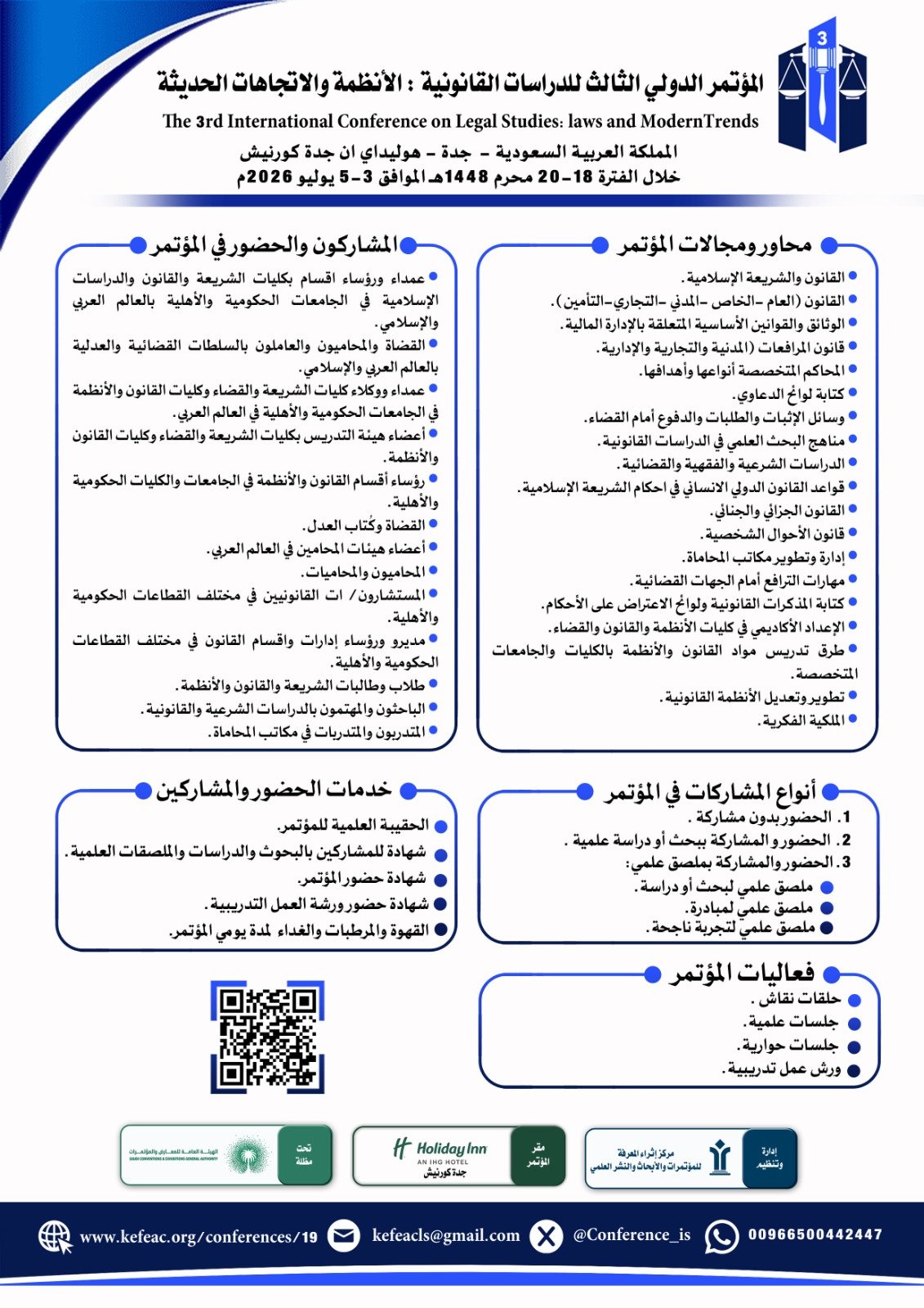 خلال الفترة من 18- 20 محرم 1448هـ الموافق 03 الى 2026-07-05 | آخر موعد لإستلام المشاركات: 2026-06-03